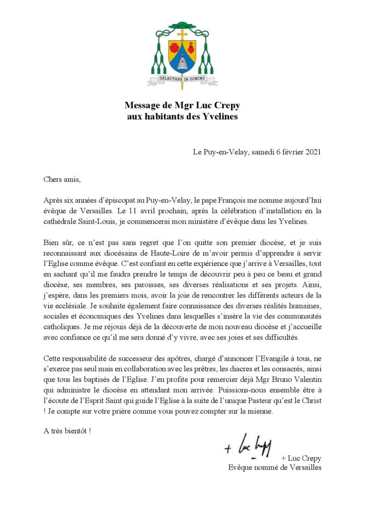 Nouvel évêque du diocèse de Versailles,